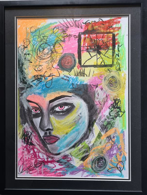 Ein Gesicht taucht auf - ruhig, beinahe gelassen - doch um es herum tobt ein Sturm aus Farben, Formen und Linien. "Keine Ruhe im Kopf" ist ein